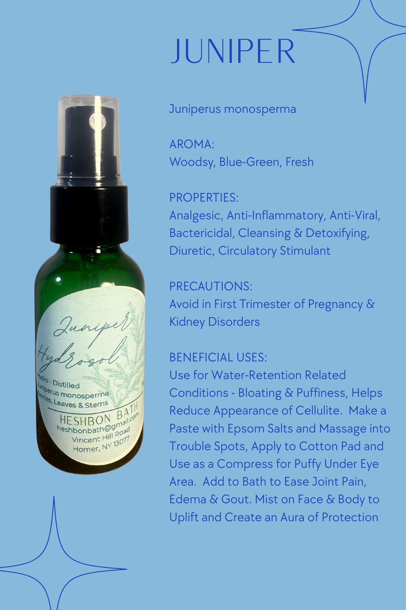 Hydrosols are gentle, healing medicinals which can be added to baths, foot soaks and sitz baths, applied as compresses, in hair care -added to shampoos, used as rinses, and scalp sprays, used to mist body, room, car, bathroom, linens, and bedding.