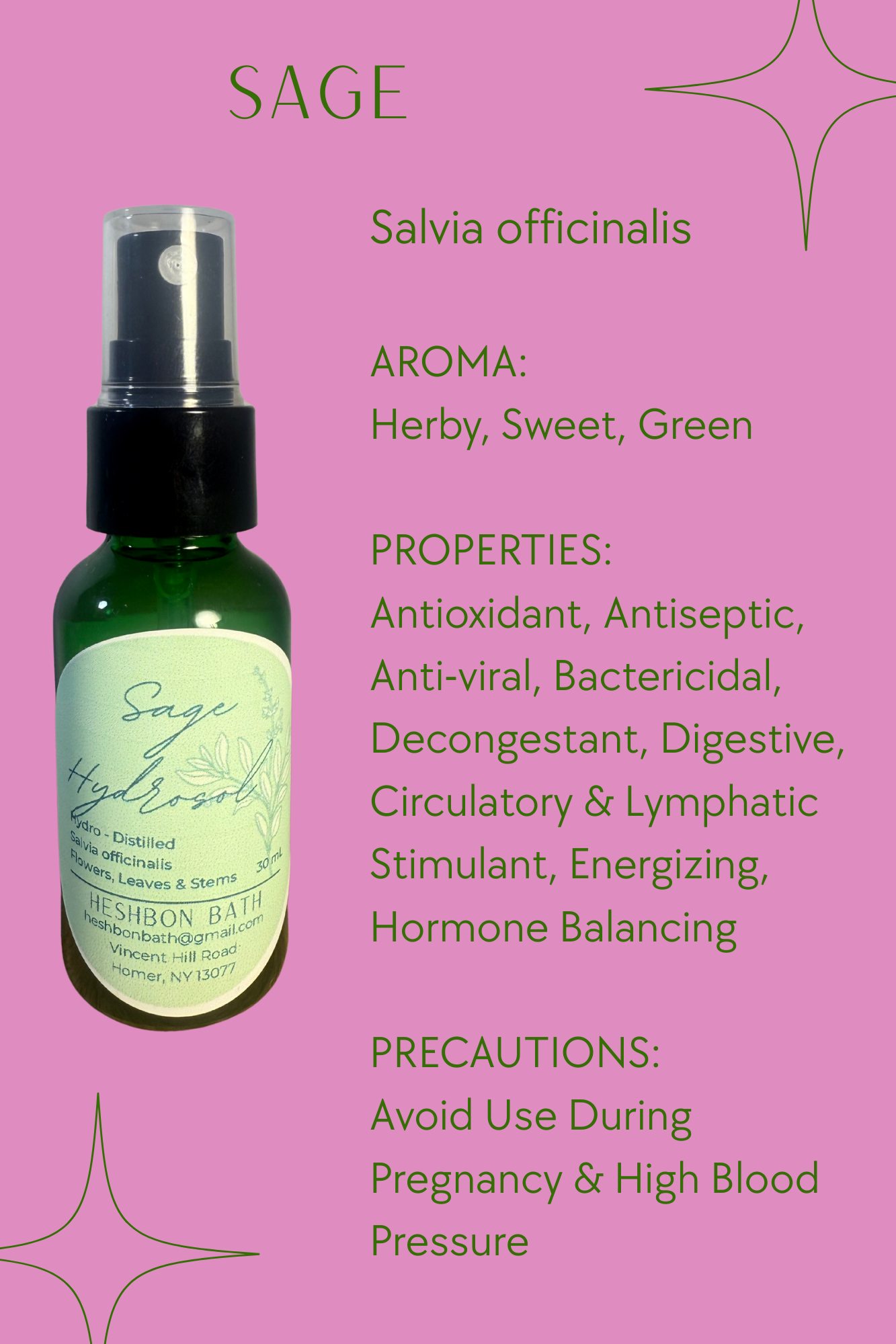 Hydrosols -also known as hydrolates, hydrolats, floral or herbal waters- are co-products of the essential oil extraction process. Hydrosols are the condensate water produced during water-distillation and contain the active aromatic and volatile components of the herbs from which they are extracted. Heshbon hydrosols are produced from locally sourced, wildcrafted and sustainably grown herbs and flowers.
